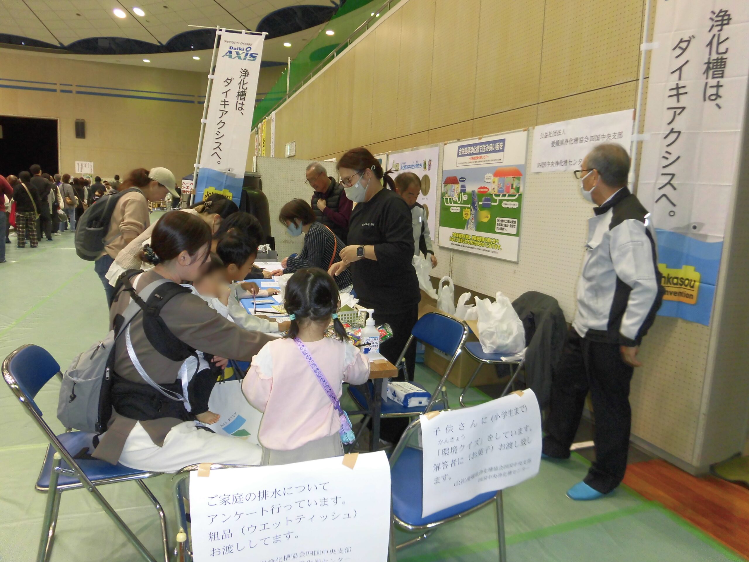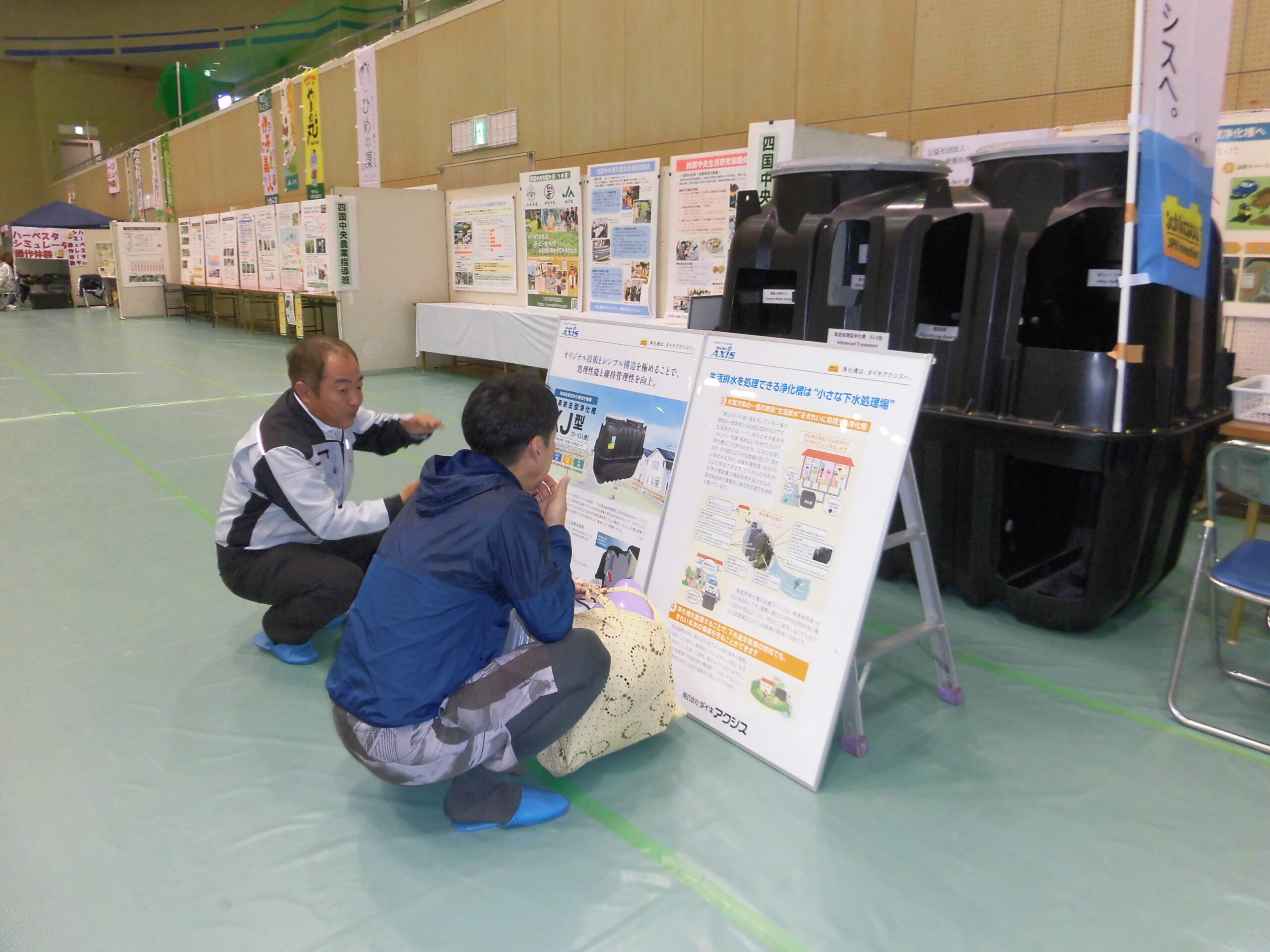 浄化槽のカットモデルの展示及び機能説明、環境クイズの実施、汚水・排水状況についてのアンケートを行うと共にパンフレットを配布し、浄化槽への理解を深めていただくための普及啓発活動を行いました。